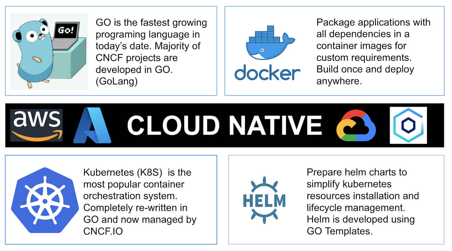 AIM: This course is designed for those individuals and/or groups who are interested in learning modern ways of provisioning Infrastructure resources such as virtual servers, containers, databases, data stores (storage), firewalls, virtual private clouds, virtual private networks, subnets, kubernetes resources, etc.